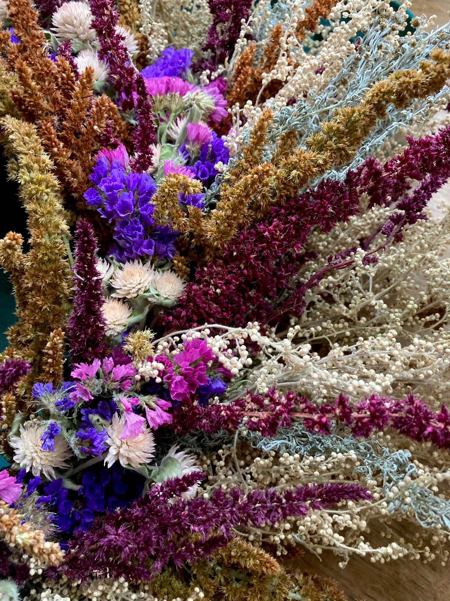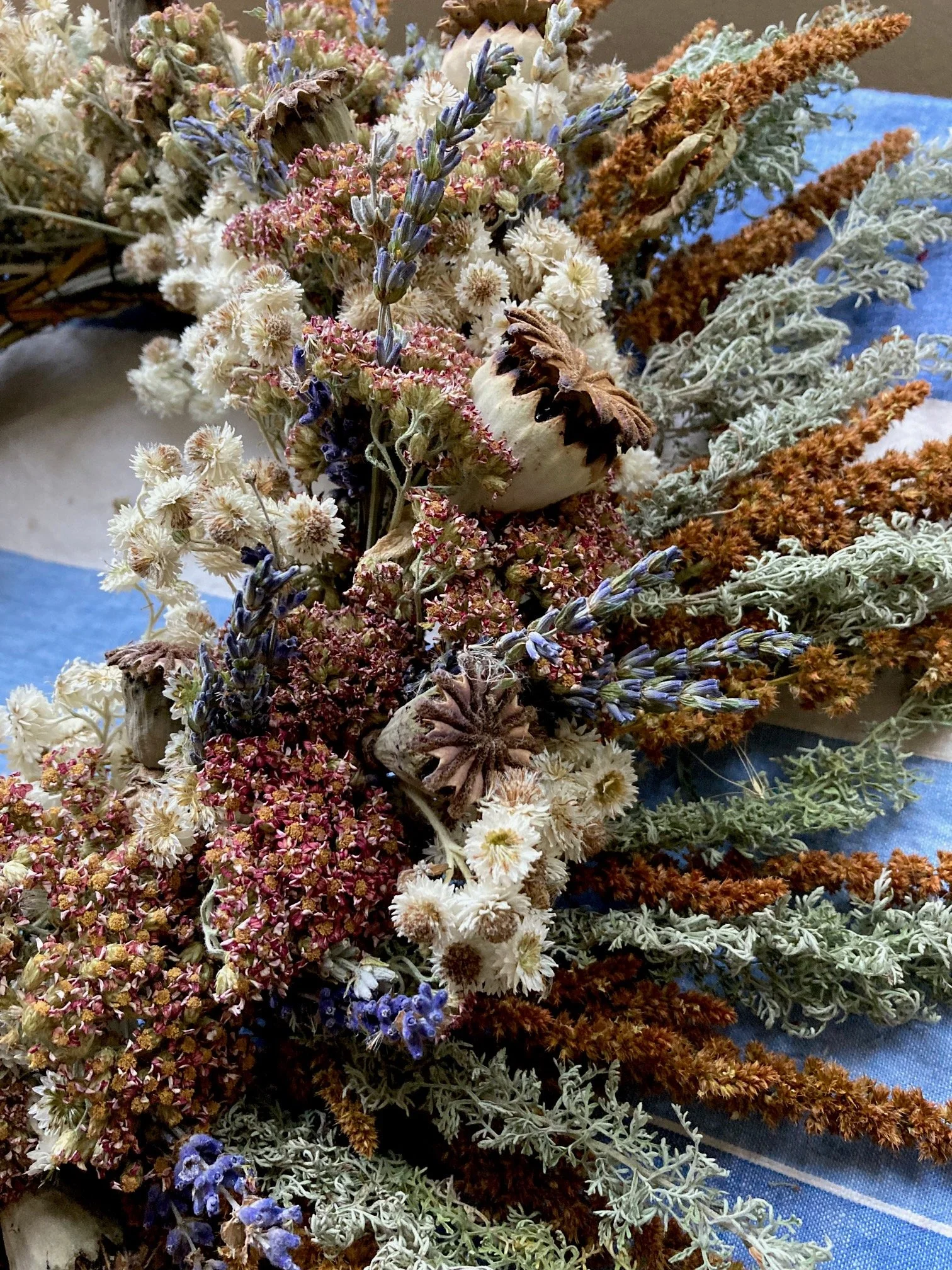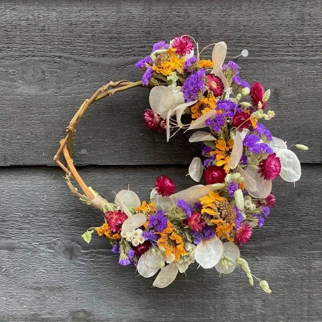 River Song Blooms is the flowery offshoot of JC Pruning and Gardening. Jamie grows flowers in her personal garden through the summer months, continually harvesting and drying their sunny beauty. In the late fall she creates dried flower wreaths and arrangements. Displayed out of direct sunlight, dried flower creations will hold their full color for a year, after which point they will slowly fade. All of the wreaths and arrangements are fully compostable. The wreaths and arrangements can be purchased at the Jam Shop in Cle Elum or by contacting Jamie directly.